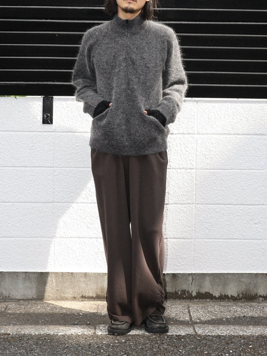 thehighlights ‘knit’ ensemble gray Hiking Patrol ESSENCE MOHAIR MIXED KNIT TOP – KIKUNOBU